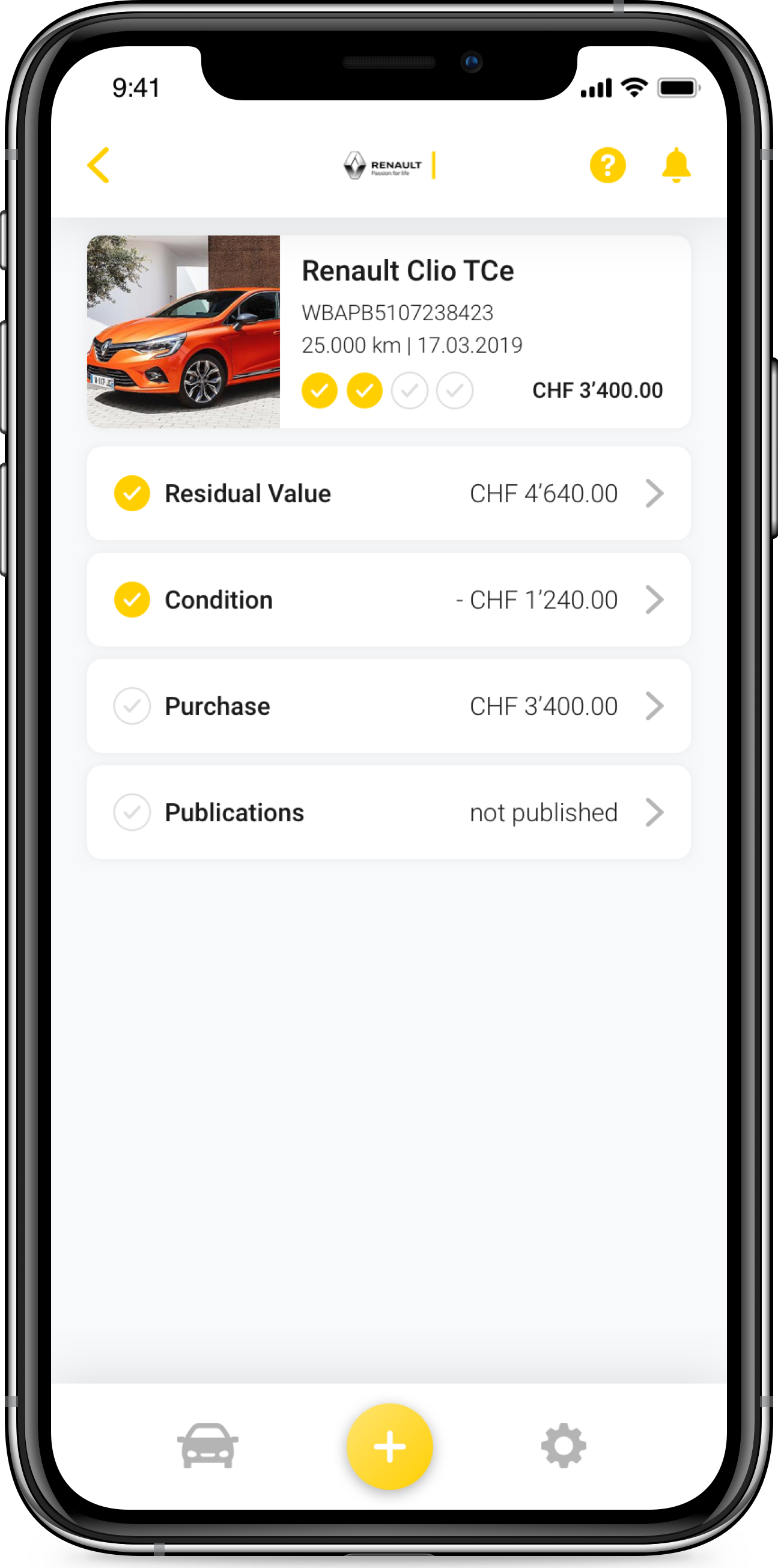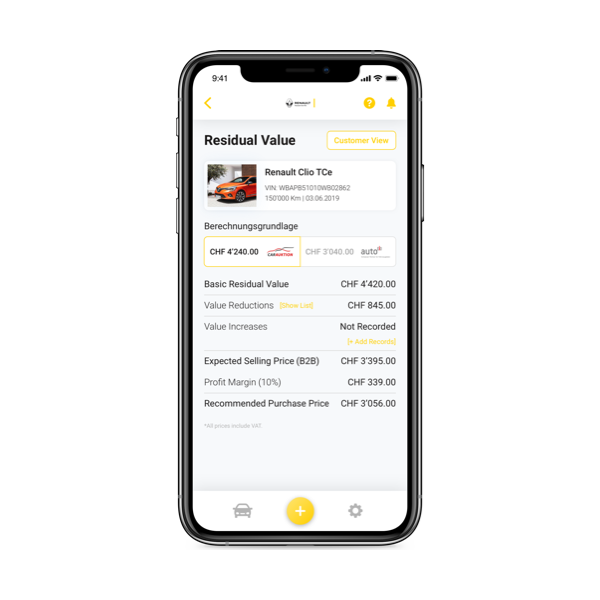 Durch Scannen des Fahrzeugscheins oder manuelle Fahrzeugsuche ermittelt die App in wenigen Sekunden den Restwert des Fahrzeugs.